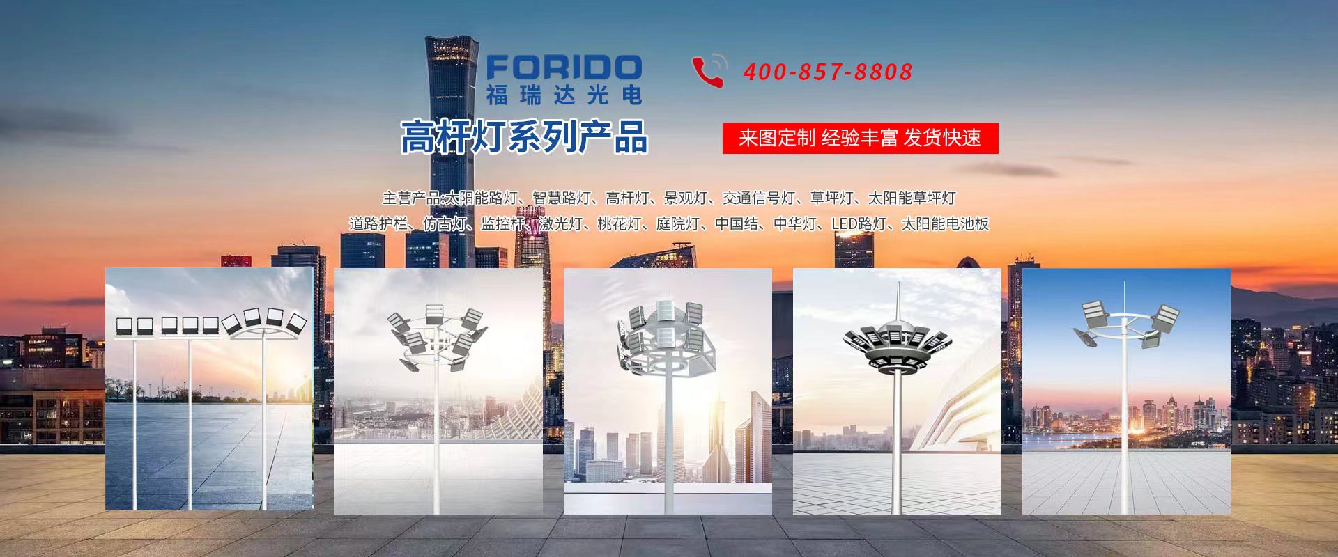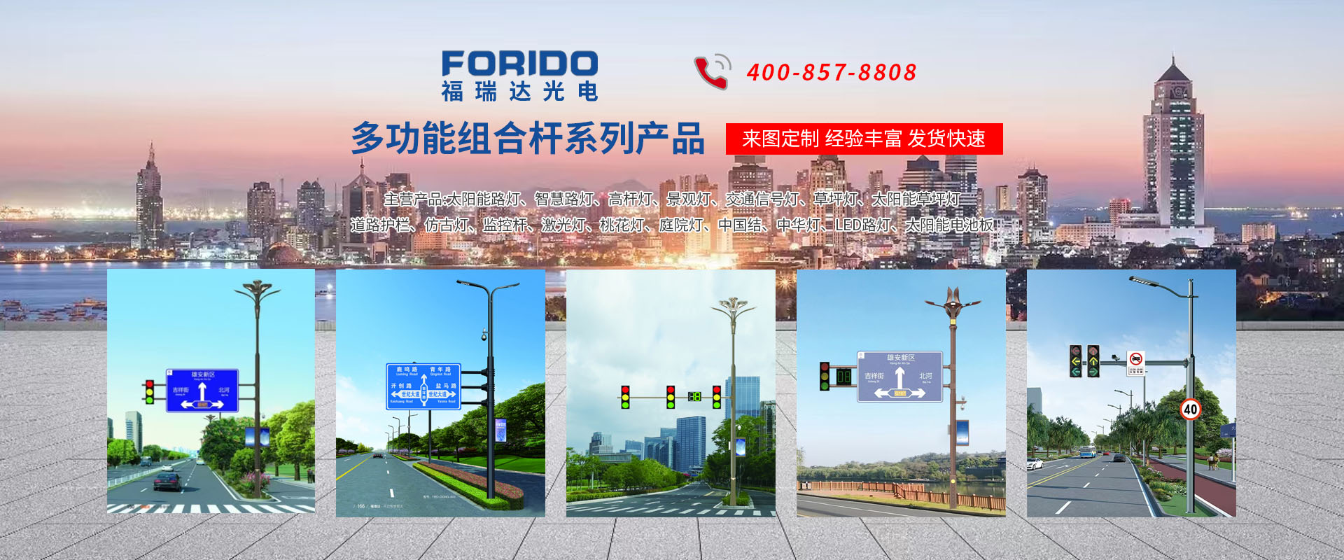 揚州福瑞達(dá)光電科技有限公司位于淮左名都?xì)v史文化名城、中國路燈制造基地?fù)P州市北郊菱塘工業(yè)園,公司占地面積76000平方米,注冊資金10518萬元,擁有高級技術(shù)嫻熟的員工280多人,擁有大型折彎機、激光切割、數(shù)控注塑機、壓鑄機、自動埋弧焊、氣焊、彩色粉末靜電噴塑等大型自動化設(shè)備,我公司是一家集設(shè)計、研發(fā)、生產(chǎn)、銷售、施工安裝服務(wù)為一體的戶外交通照明產(chǎn)品制造商,主要生產(chǎn)智慧路燈、太陽能路燈、LED路燈、高桿燈、景觀燈、交通信號燈、交通標(biāo)志牌、通信鐵塔、路跨鋼結(jié)構(gòu)、公交站臺、太陽能光伏組件、景點亮化、樓宇亮化工程的設(shè)計施工等。公司秉承開拓創(chuàng)新、銳意進(jìn)取、精誠服務(wù)的企業(yè)精神,堅持以“誠信為本、技術(shù)為先、服務(wù)是金”的合作理念,我們憑借先進(jìn)的制造工藝、優(yōu)質(zhì)的產(chǎn)品質(zhì)量、合理的市場價格和完善的售后服務(wù)贏得了廣闊的市場和客戶的信賴。  我公司已通過ISO9001質(zhì)量體系認(rèn)證、ISO14001環(huán)境管理體認(rèn)證,CQC產(chǎn)品認(rèn)證,中國節(jié)能產(chǎn)品認(rèn)證,通過“CCC”強制性產(chǎn)品認(rèn)證,具有市政總承包,照明,交安,設(shè)計等資質(zhì)···